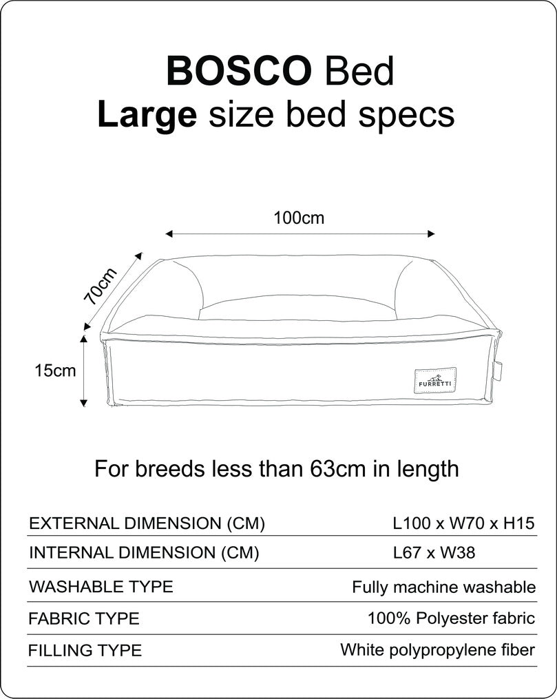 Large Size Range: Available in four sizes (S, M, L, XL), the Bosco ensures every dog, from the smallest companion to larger breeds, can enjoy the premium comfort and support they deserve.