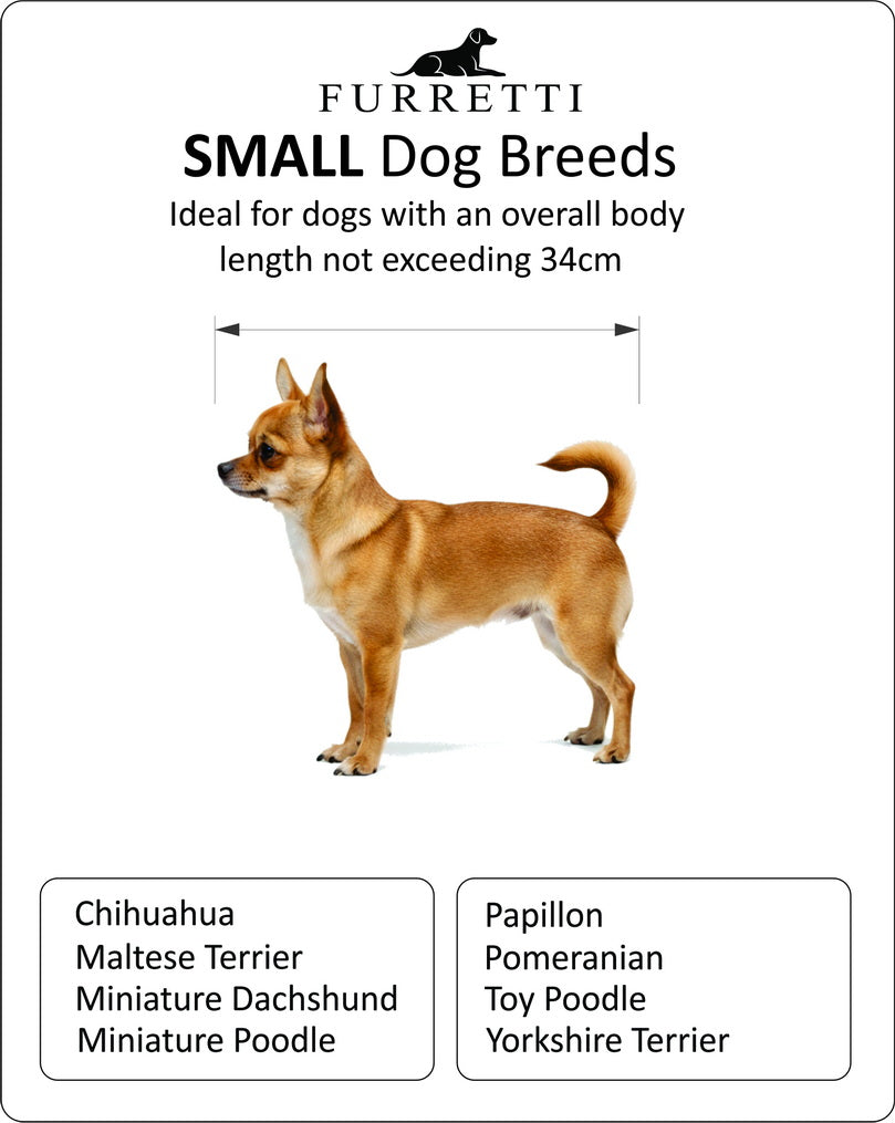 - Recommended Breeds: Chihuahua, Maltese Terrier, Miniature Dachshund, Miniature Poodle, Papillon, Pomeranian, Toy Poodle, and Yorkshire Terrier.