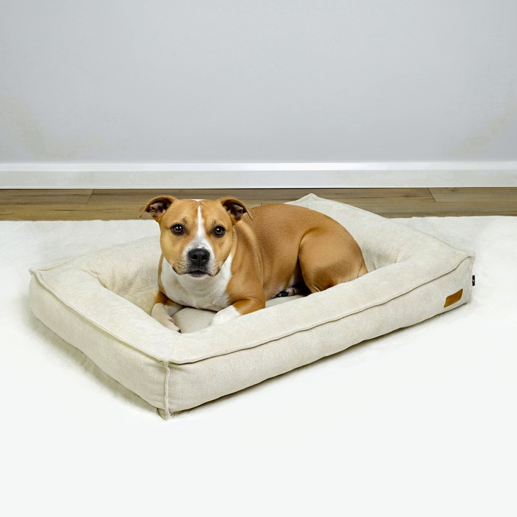 Rectangular Bolster Design: The thick, perimeter bolsters provide ideal support for your dog's head and spine, making it perfect for sprawling or curling up against the cushioned sides.