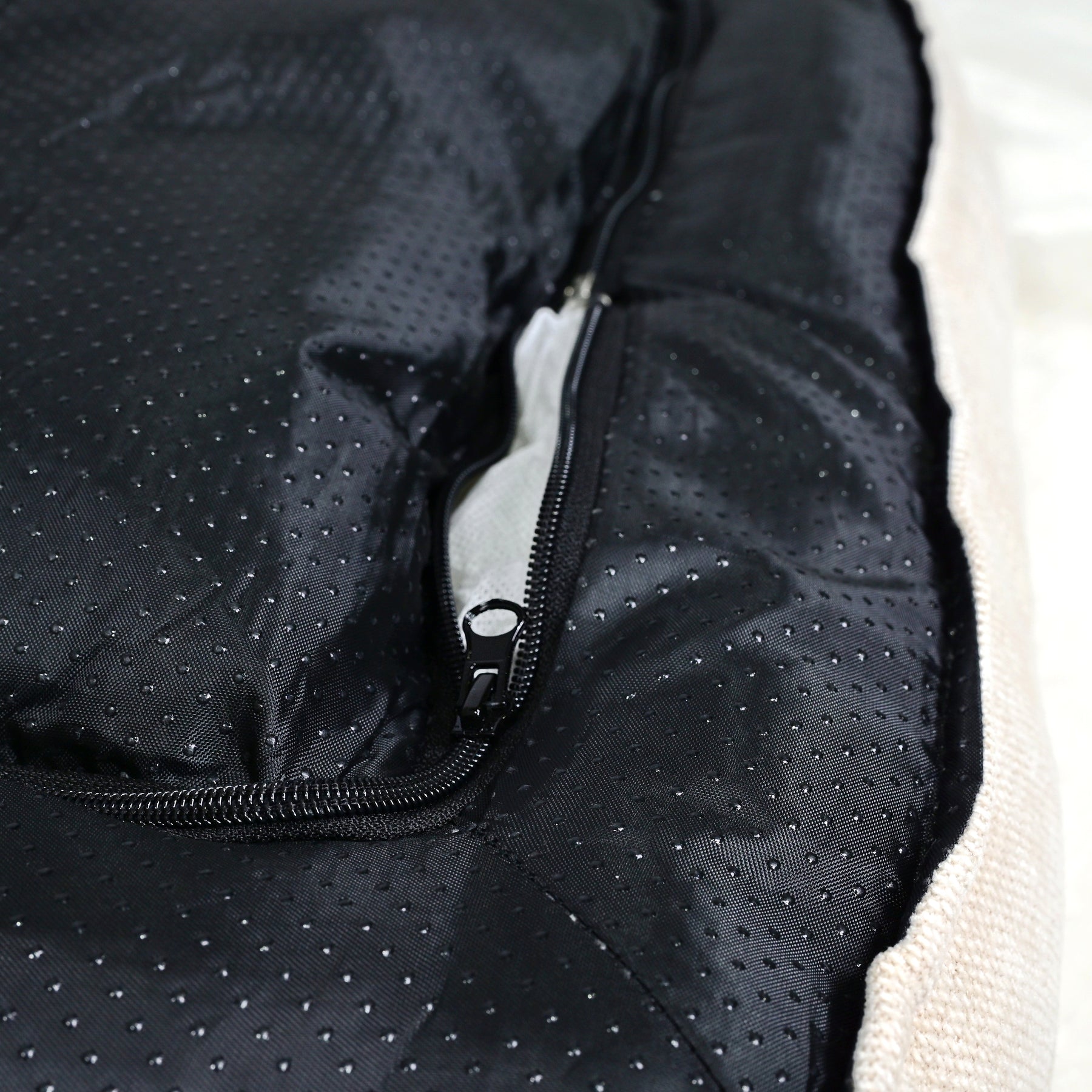 Secure Base: The underside features durable zippers and an anti-slip finish, keeping the bed firmly in place and allowing easy access to the inner components for cleaning.