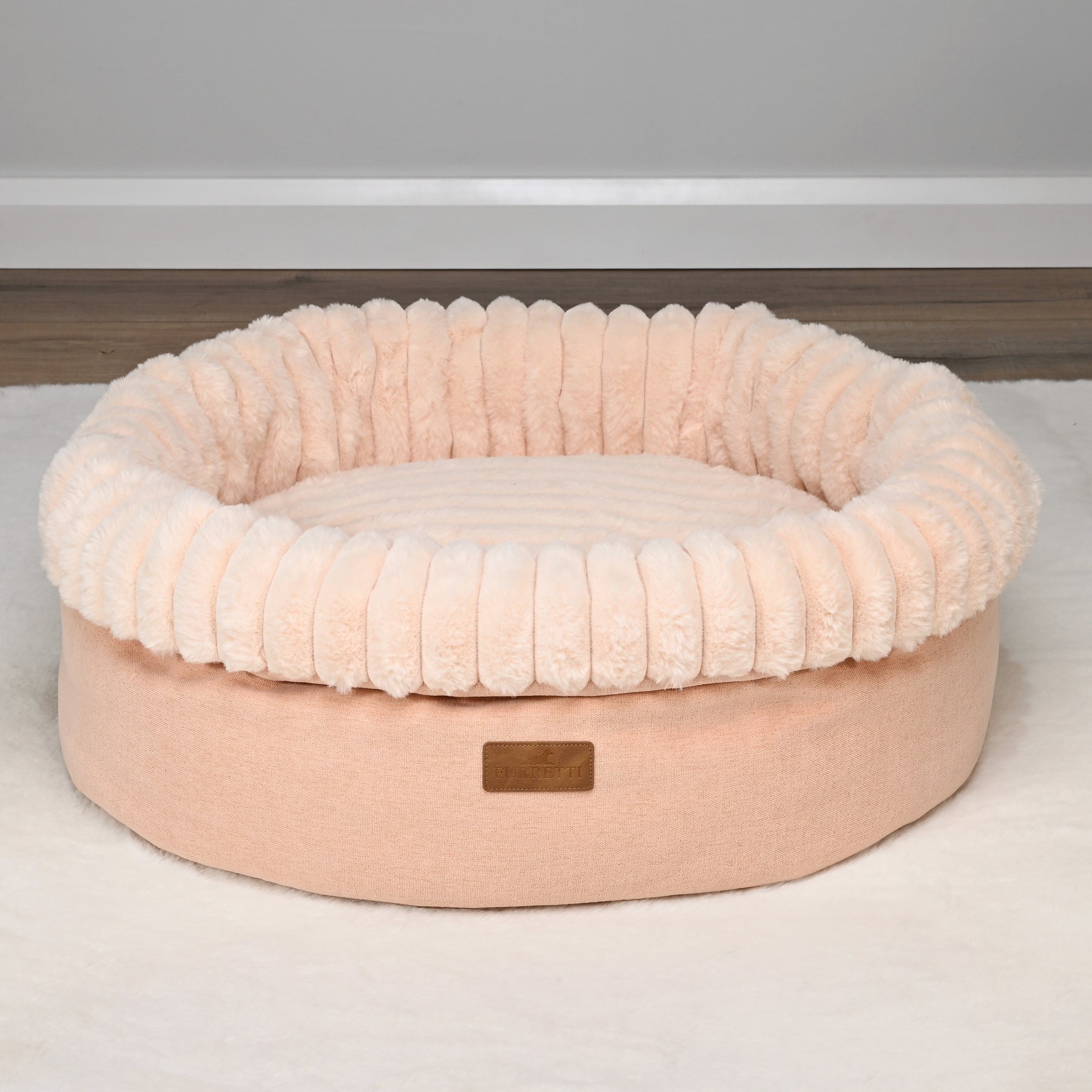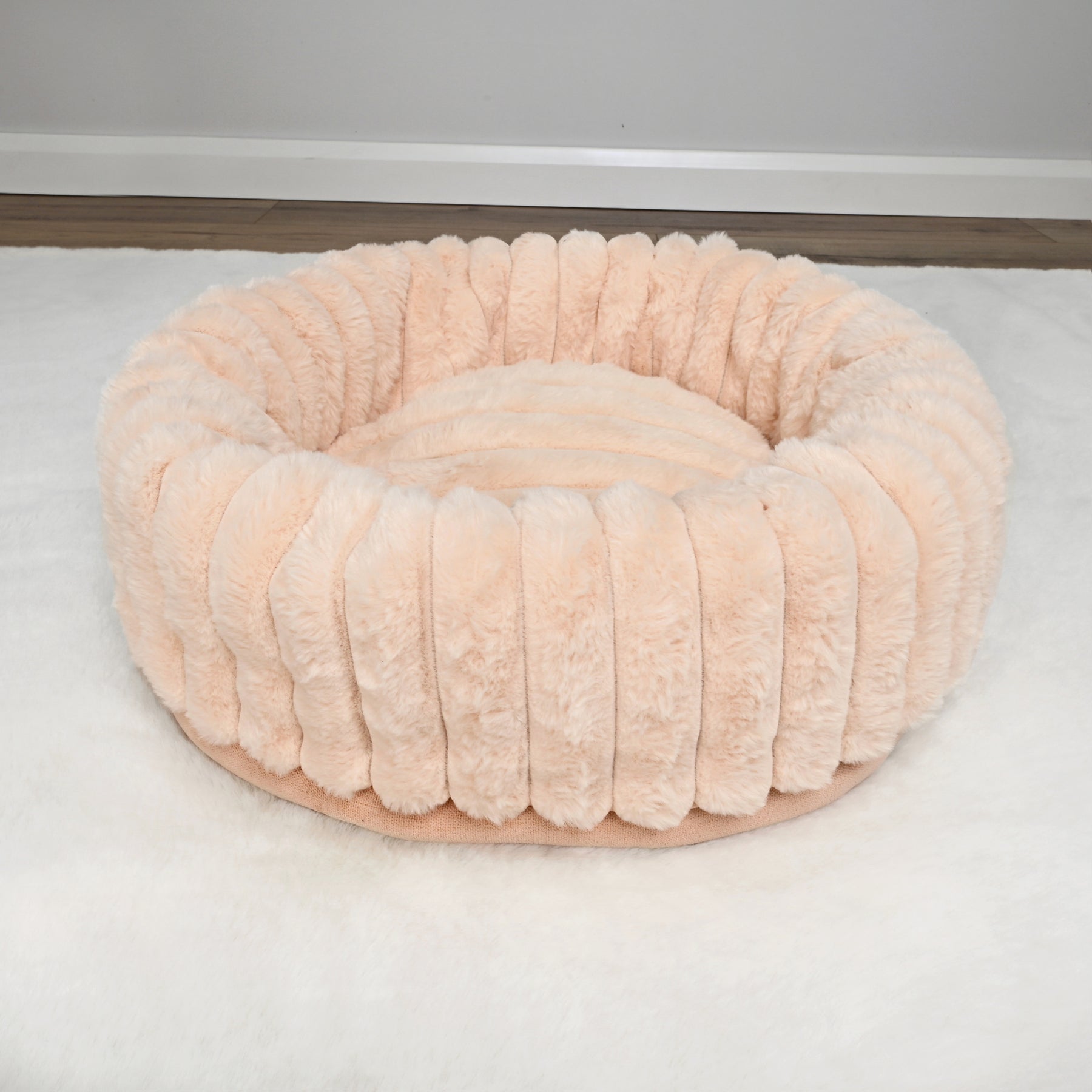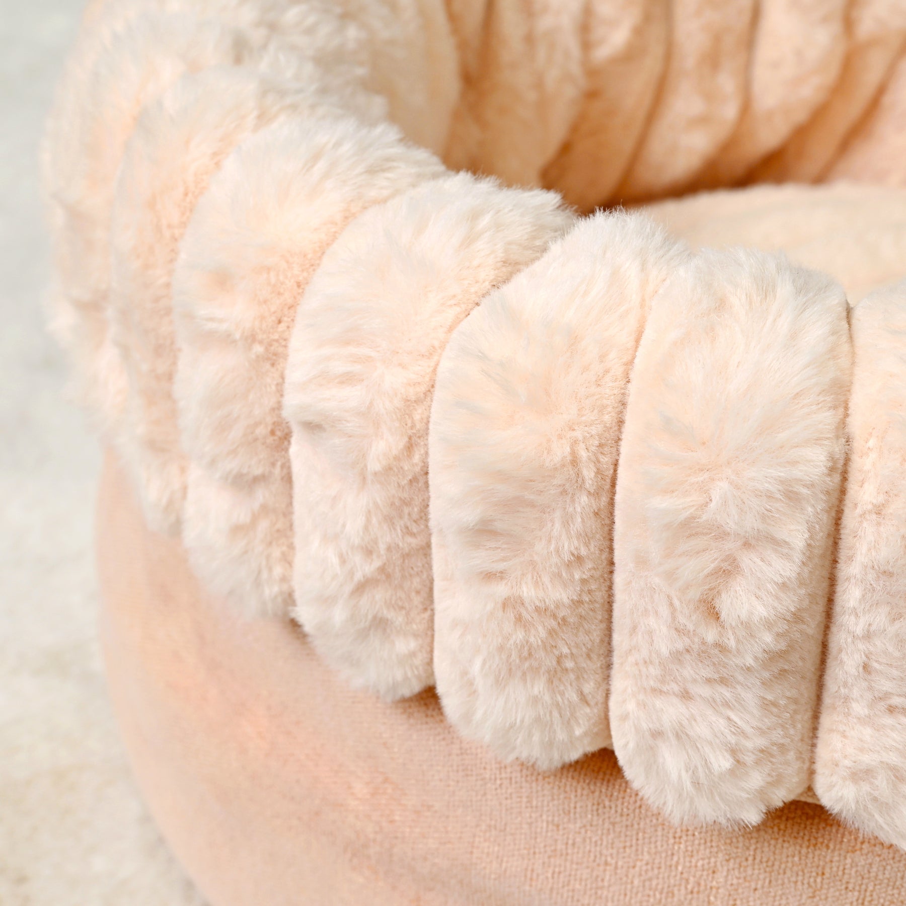 Signature Plush Ribbing: The generous, high bolster is wrapped in an ultra-soft, vertically ribbed faux fur, providing neck and head support while giving pets the comforting feeling of being securely nested.