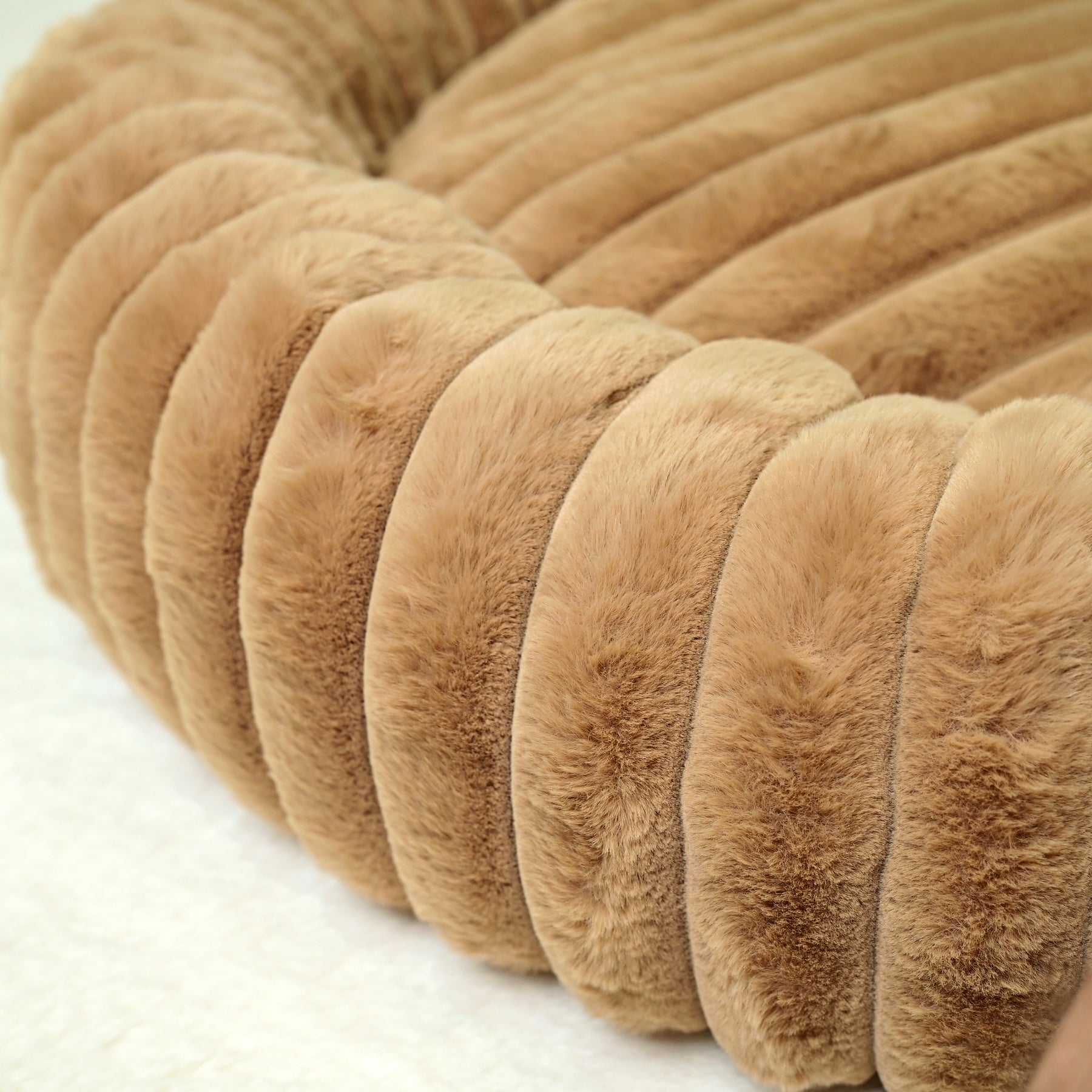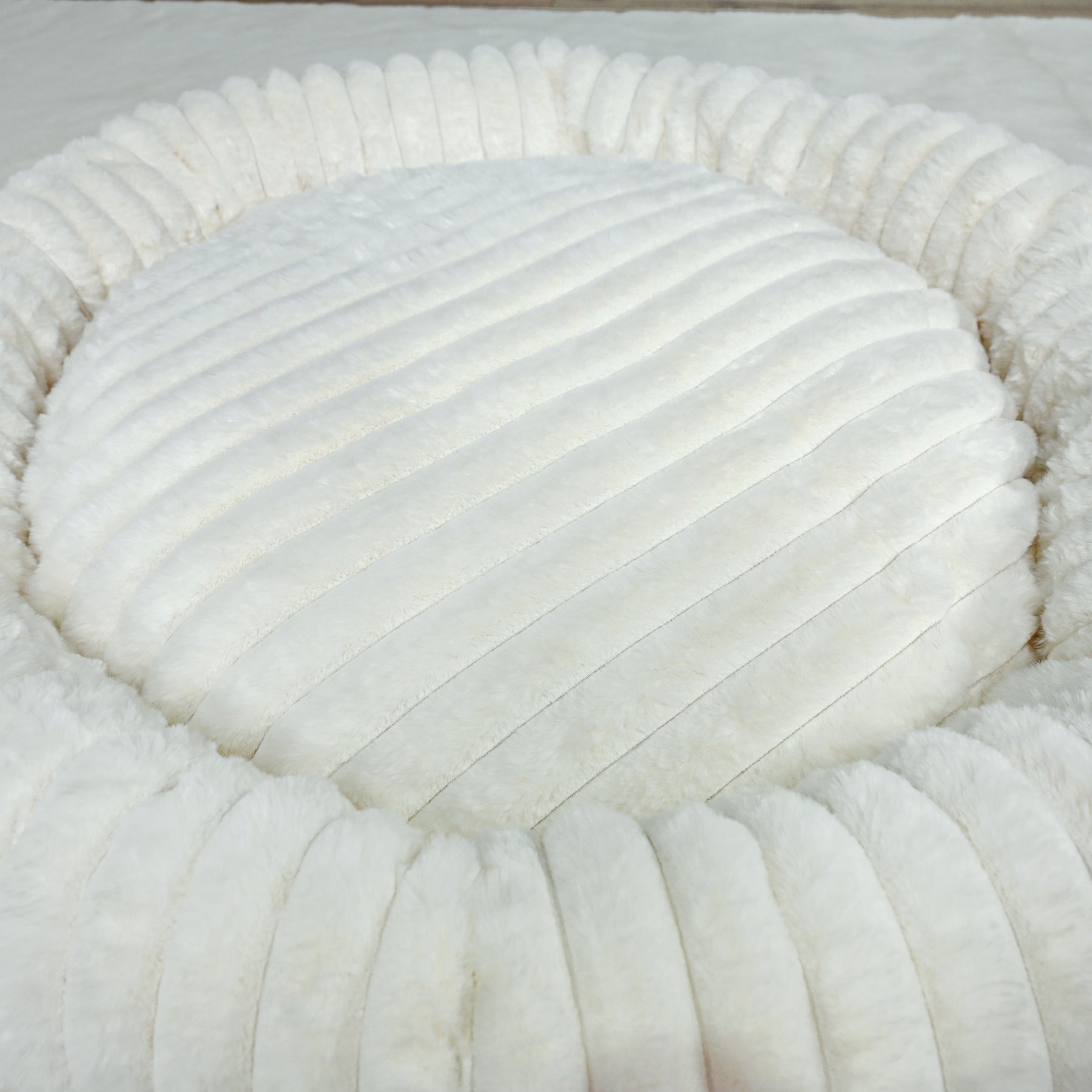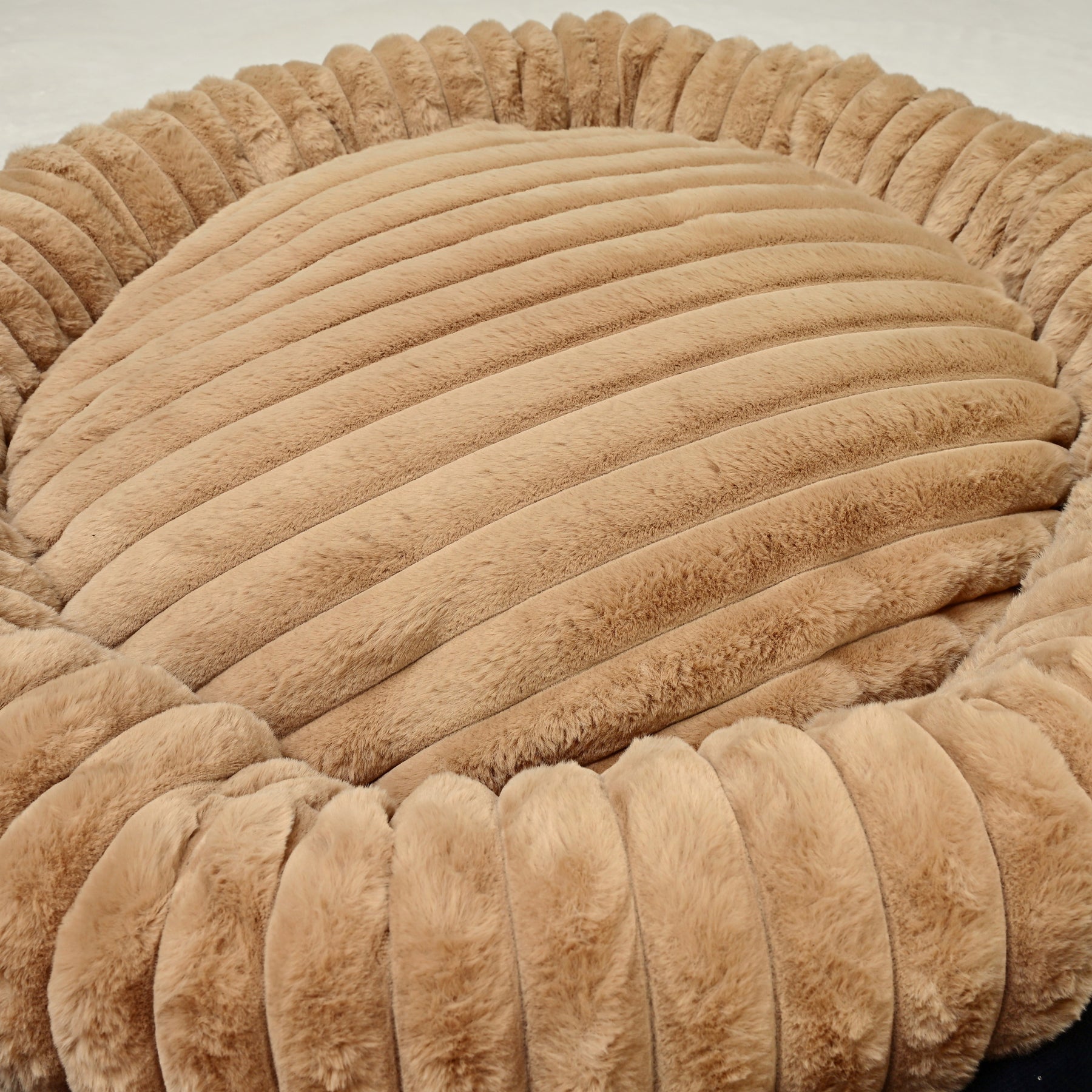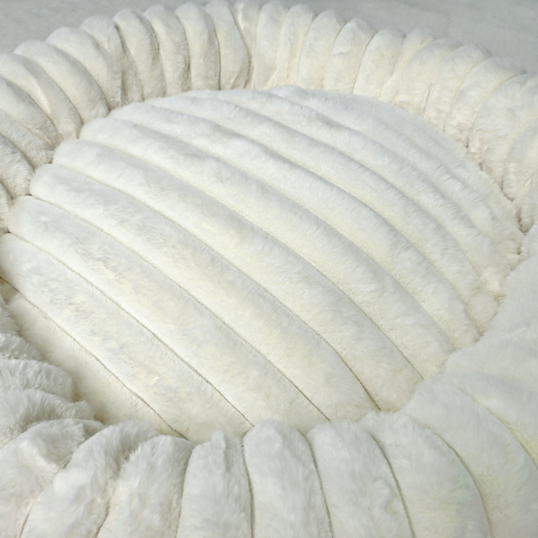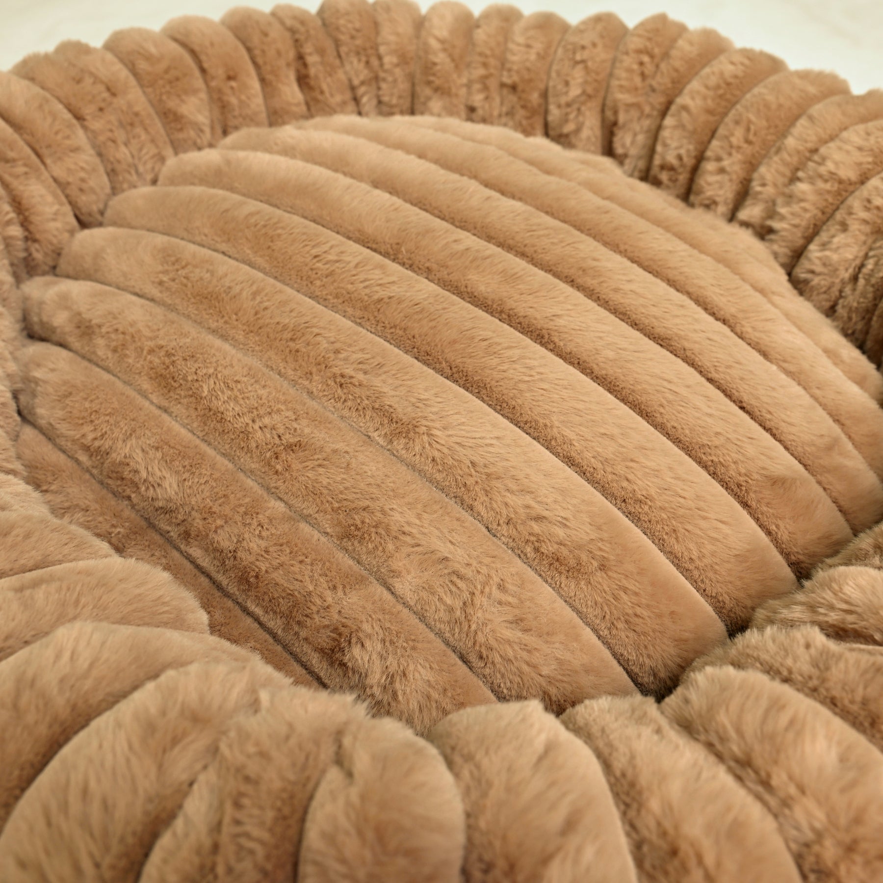 Signature Ribbed Plush: The entire bed is enveloped in a thick, premium faux fur with a distinct vertical ribbing. This unique texture is not only stylish but offers an irresistible tactile sensation and a deep level of comfort.