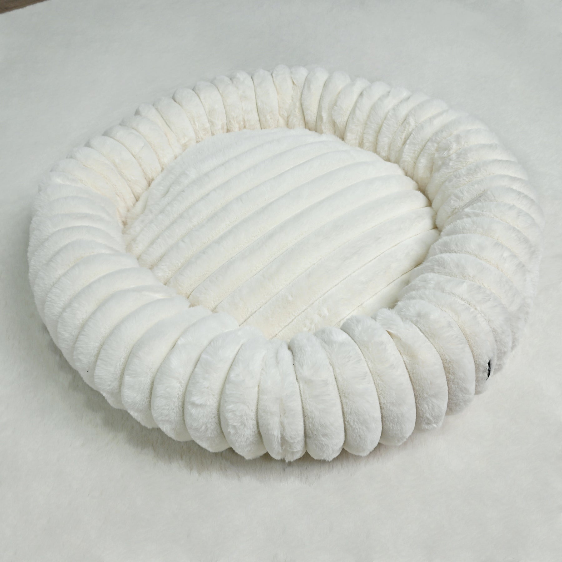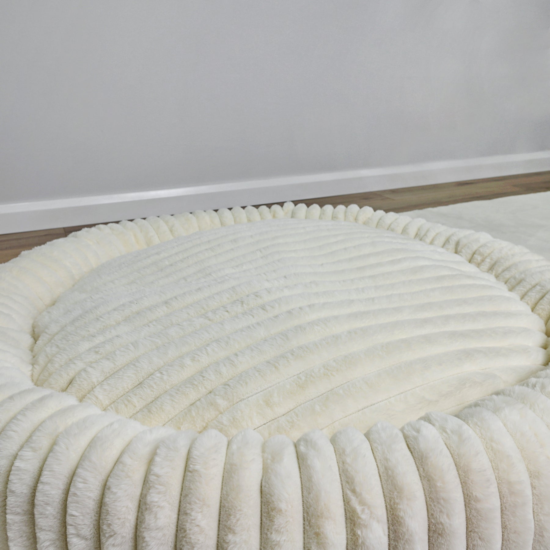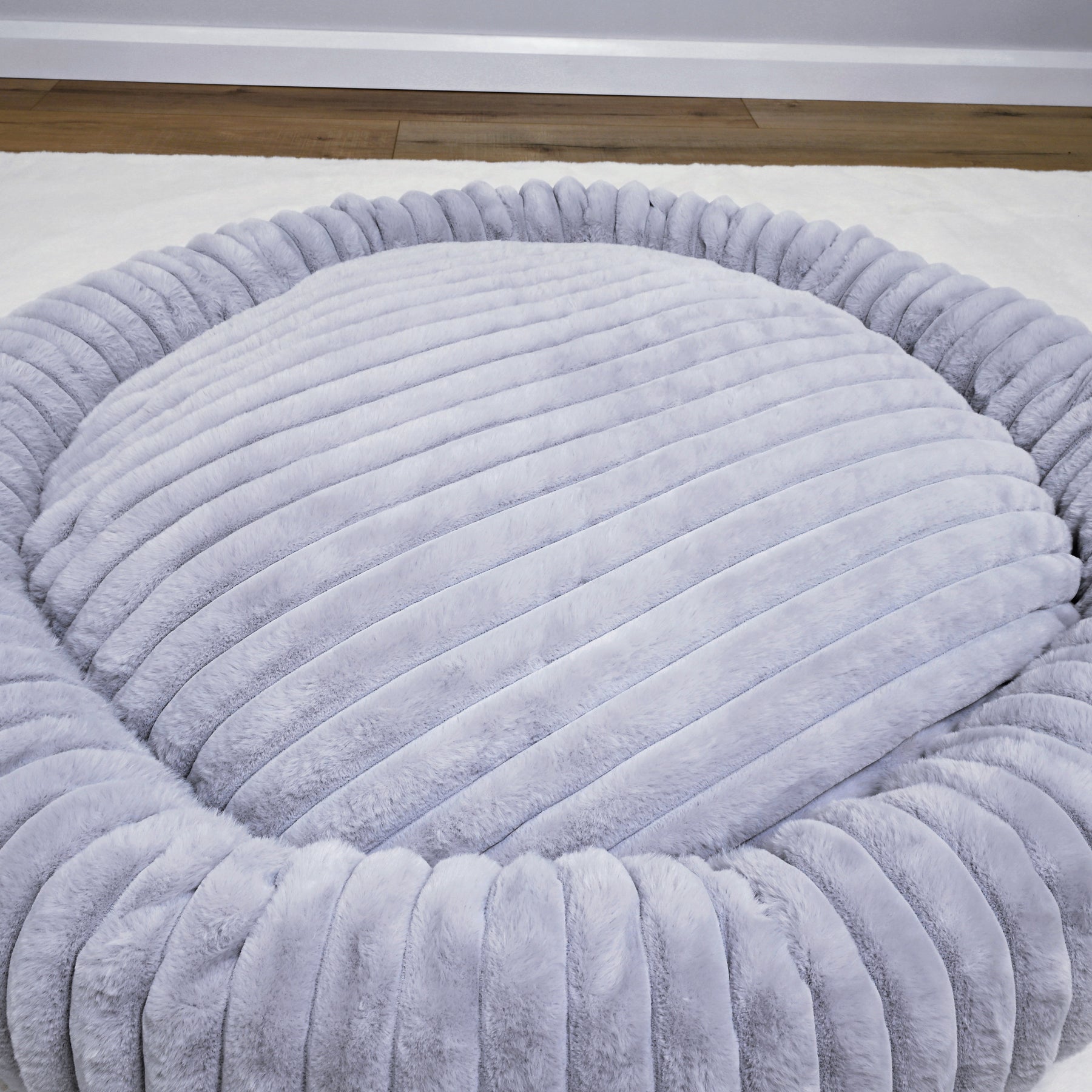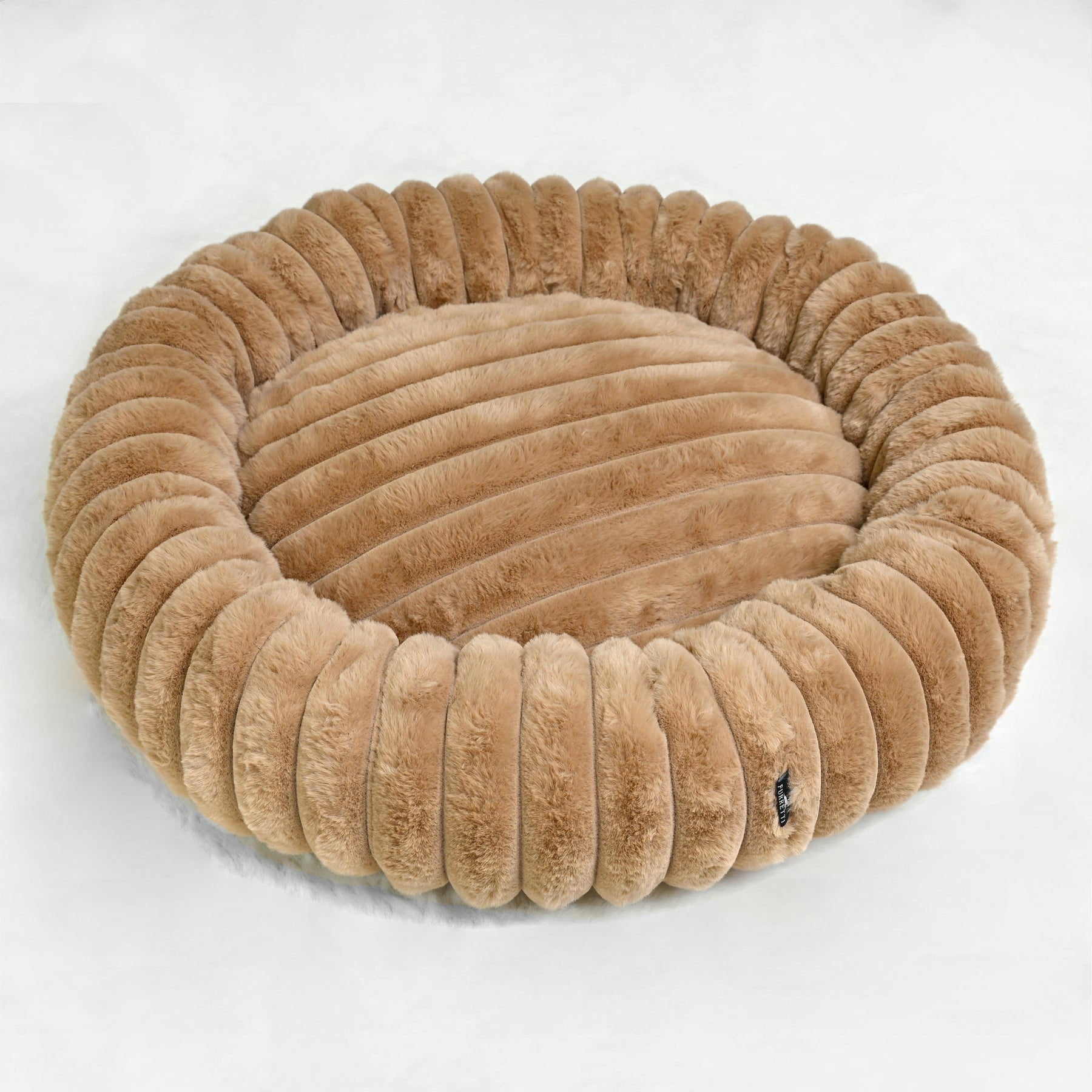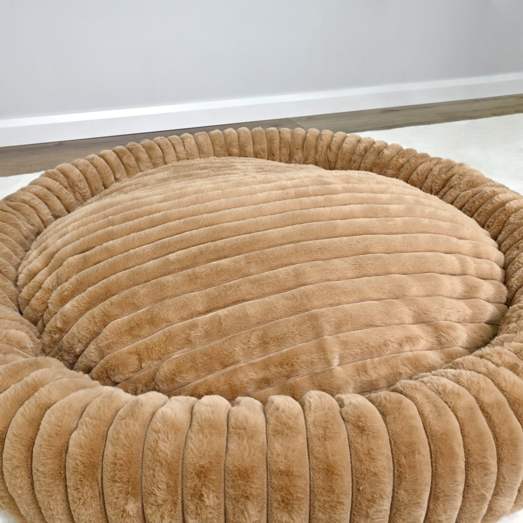 Signature Ribbed Plush: The entire bed is enveloped in a thick, premium faux fur with a distinct vertical ribbing. This unique texture is not only stylish but offers an irresistible tactile sensation and a deep level of comfort.