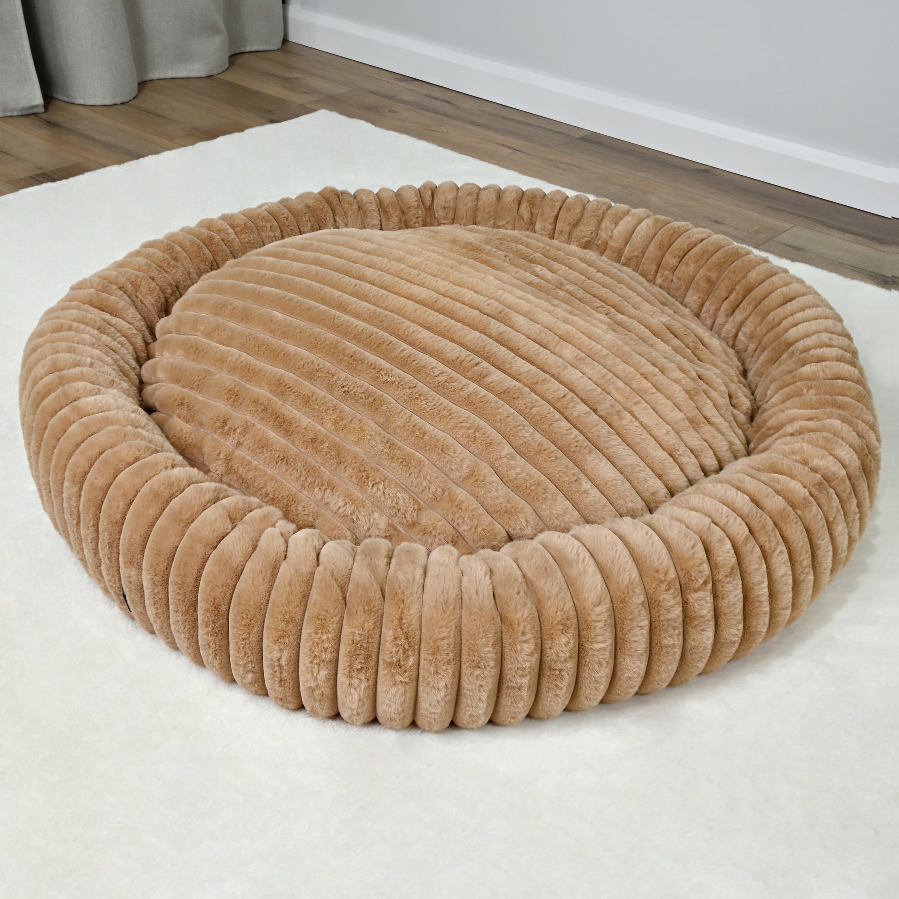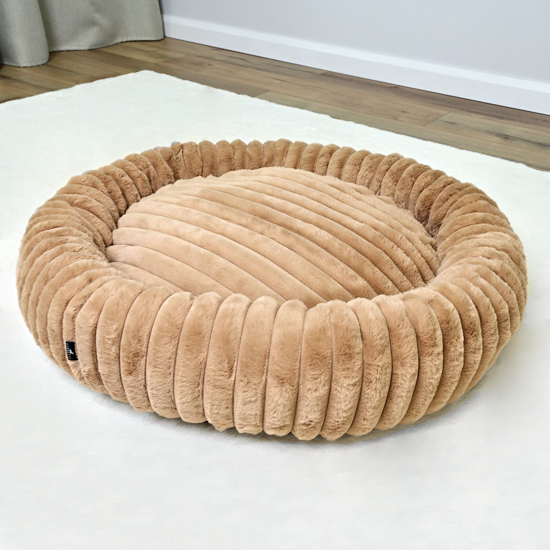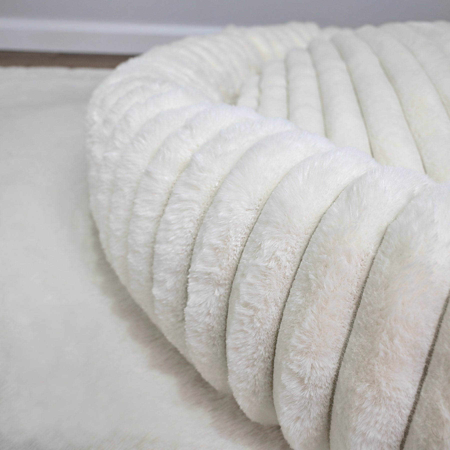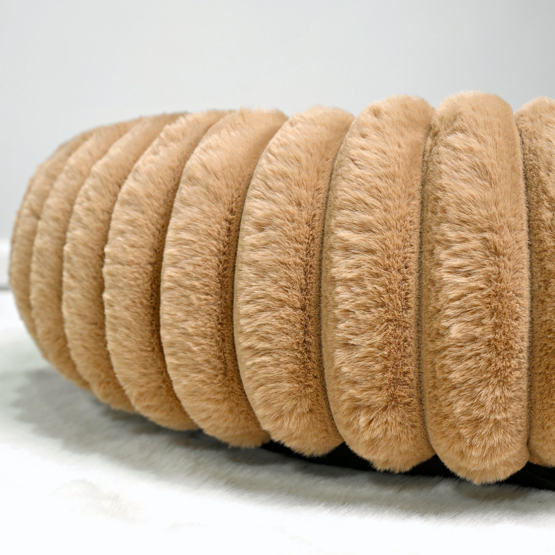 Signature Ribbed Plush: The entire bed is enveloped in a thick, premium faux fur with a distinct vertical ribbing. This unique texture is not only stylish but offers an irresistible tactile sensation and a deep level of comfort.
