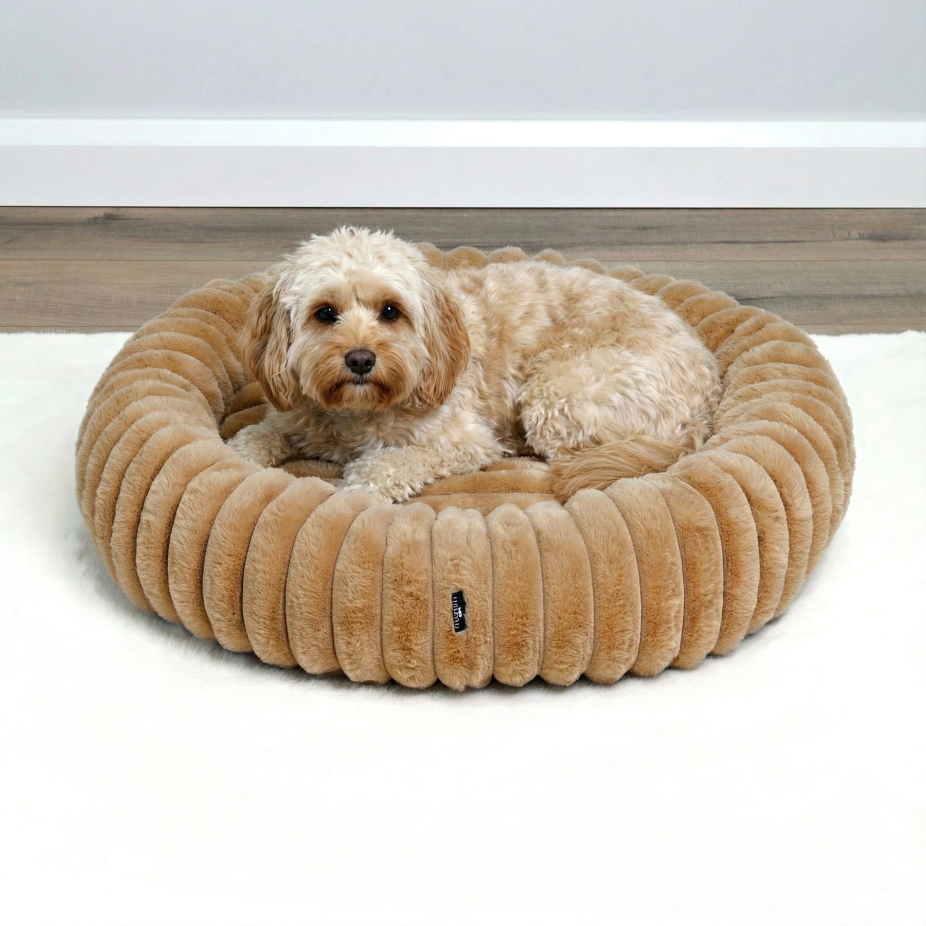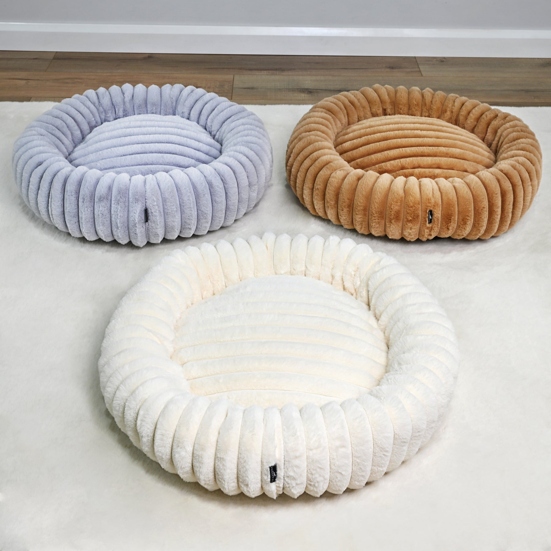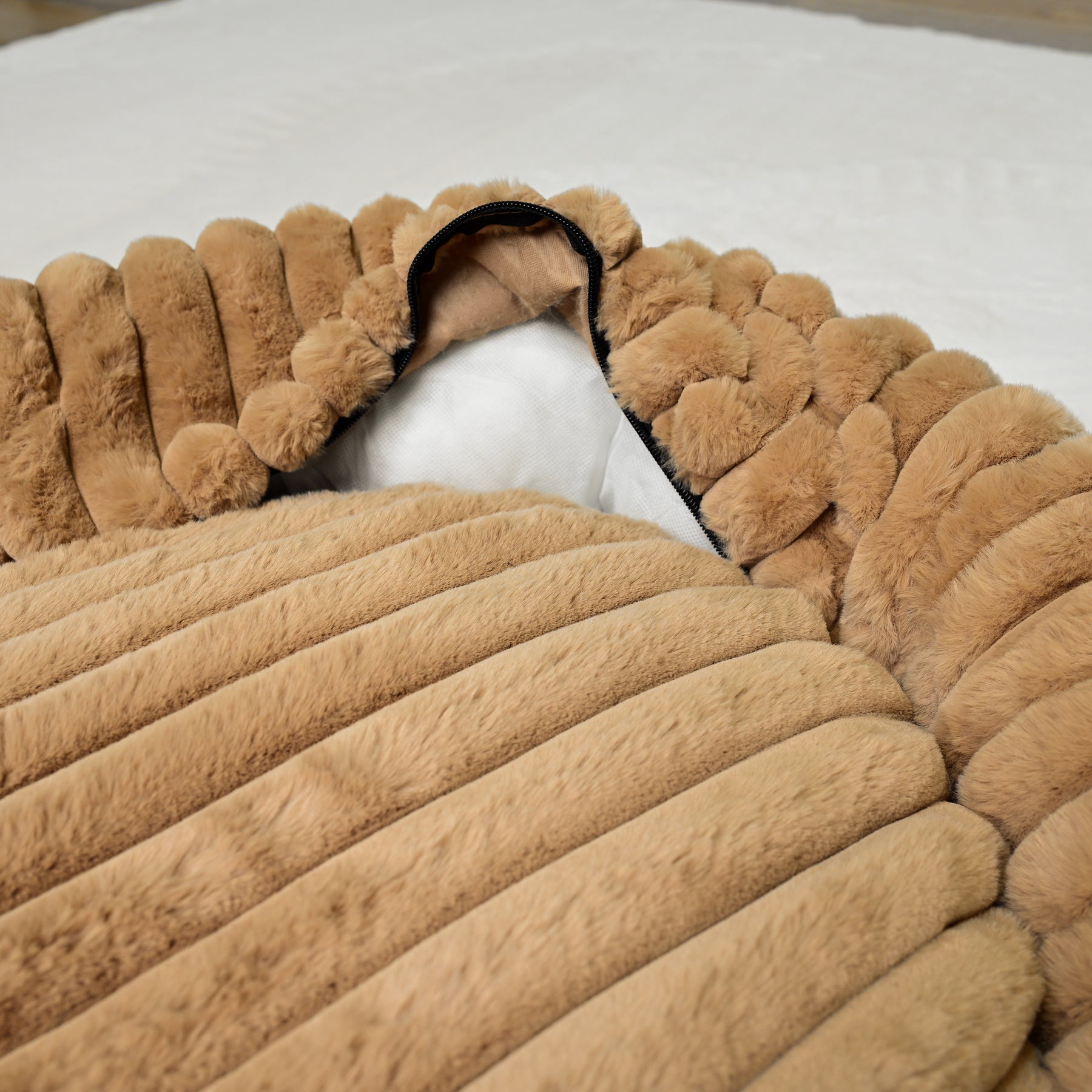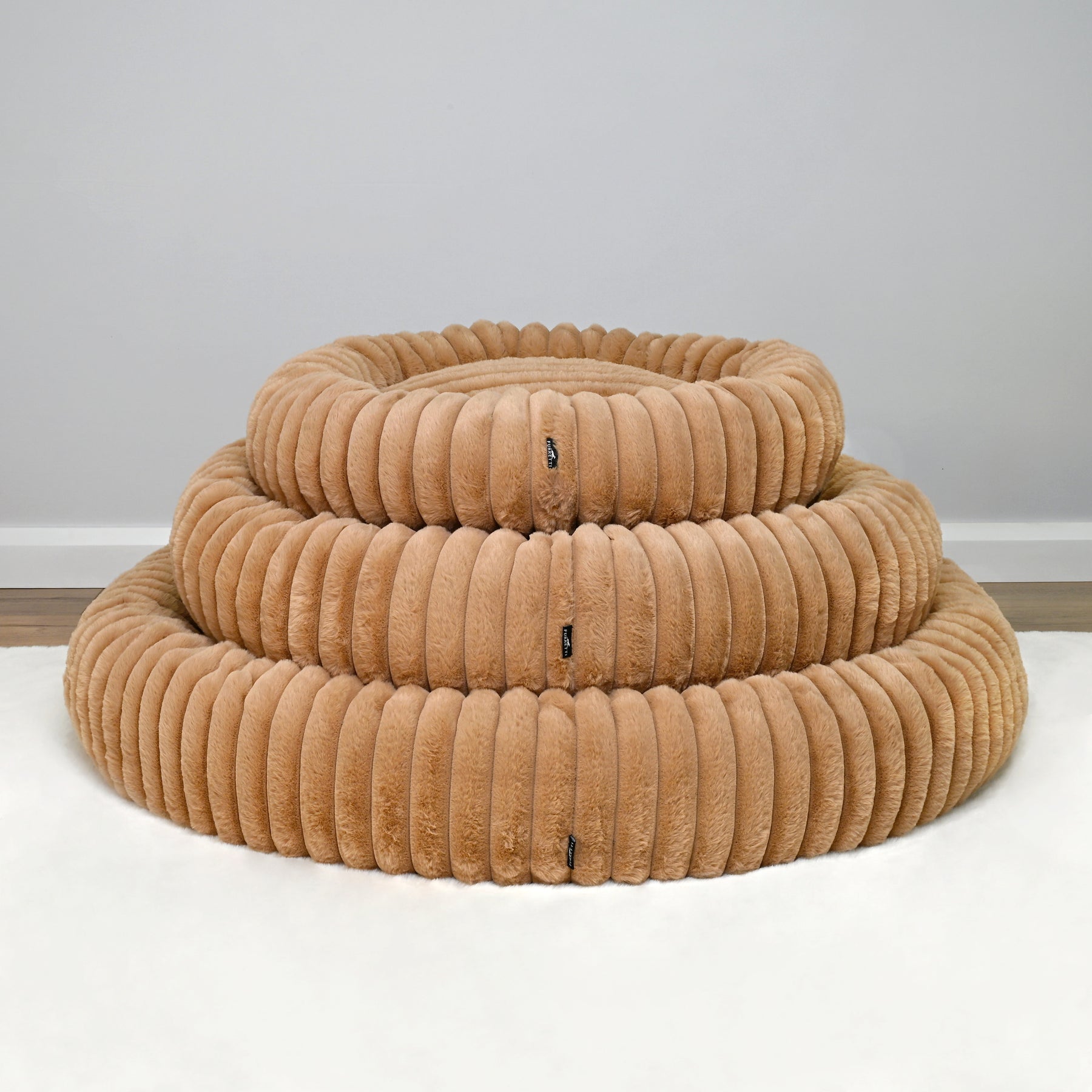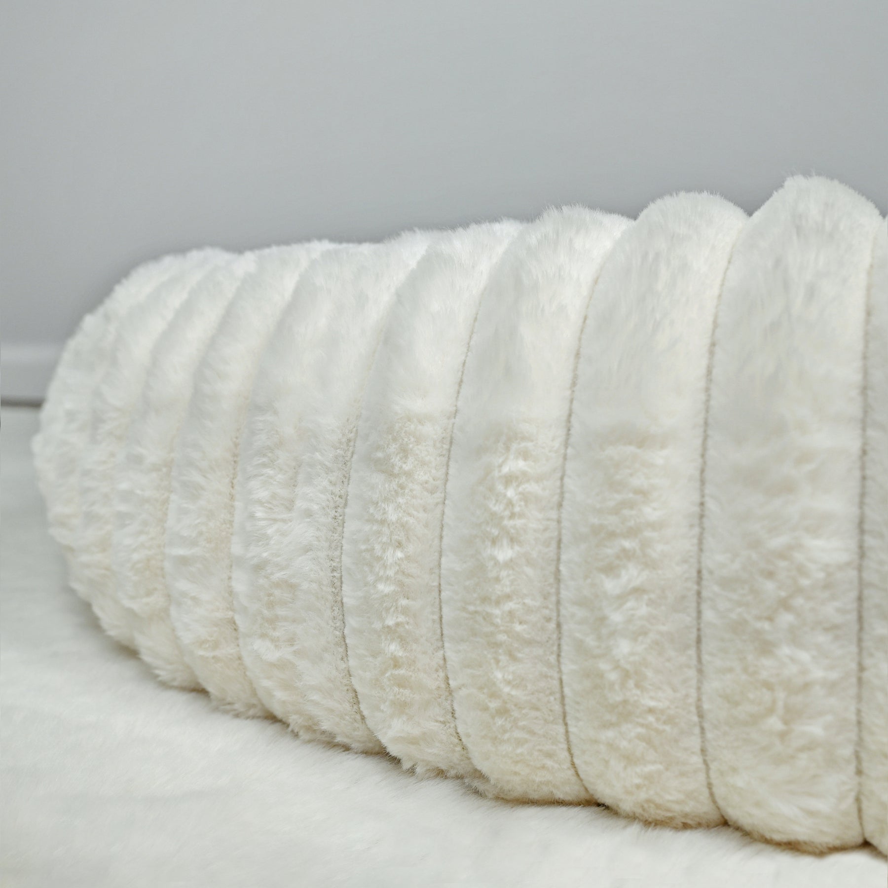 Signature Ribbed Plush: The entire bed is enveloped in a thick, premium faux fur with a distinct vertical ribbing. This unique texture is not only stylish but offers an irresistible tactile sensation and a deep level of comfort.
