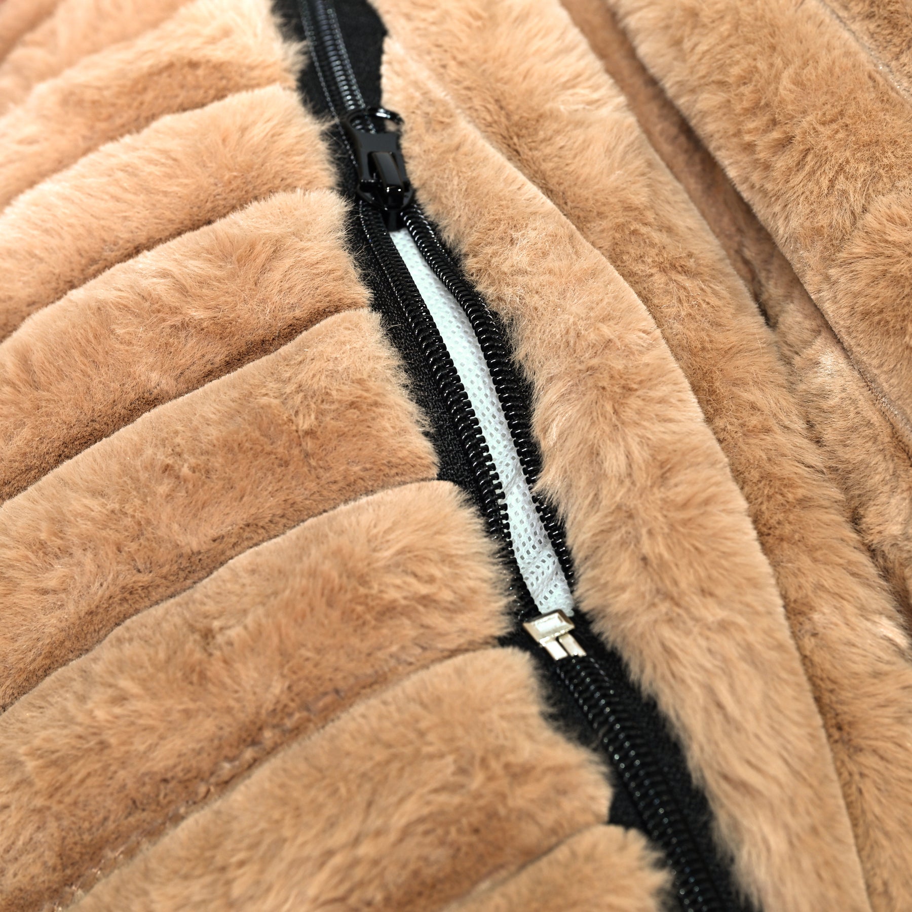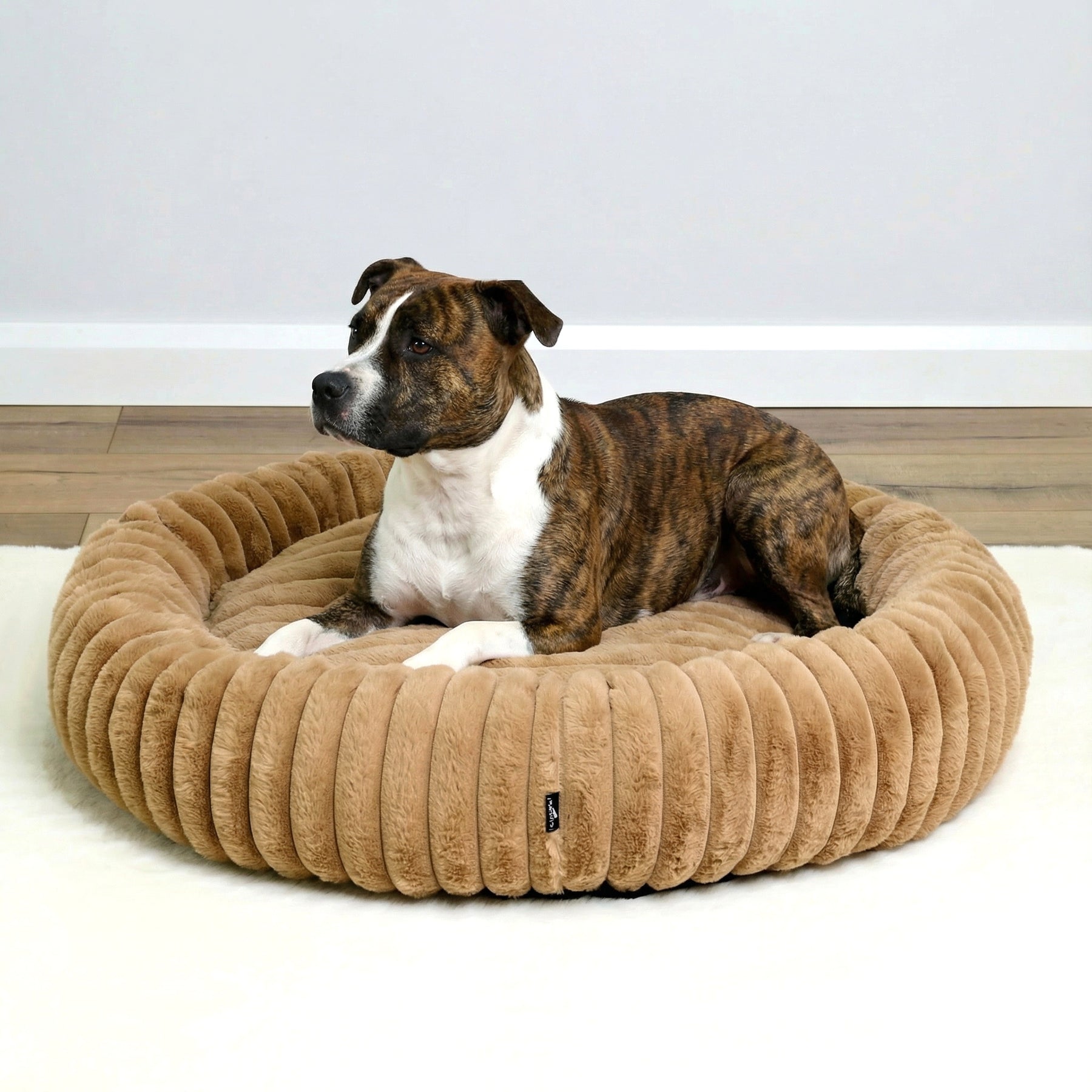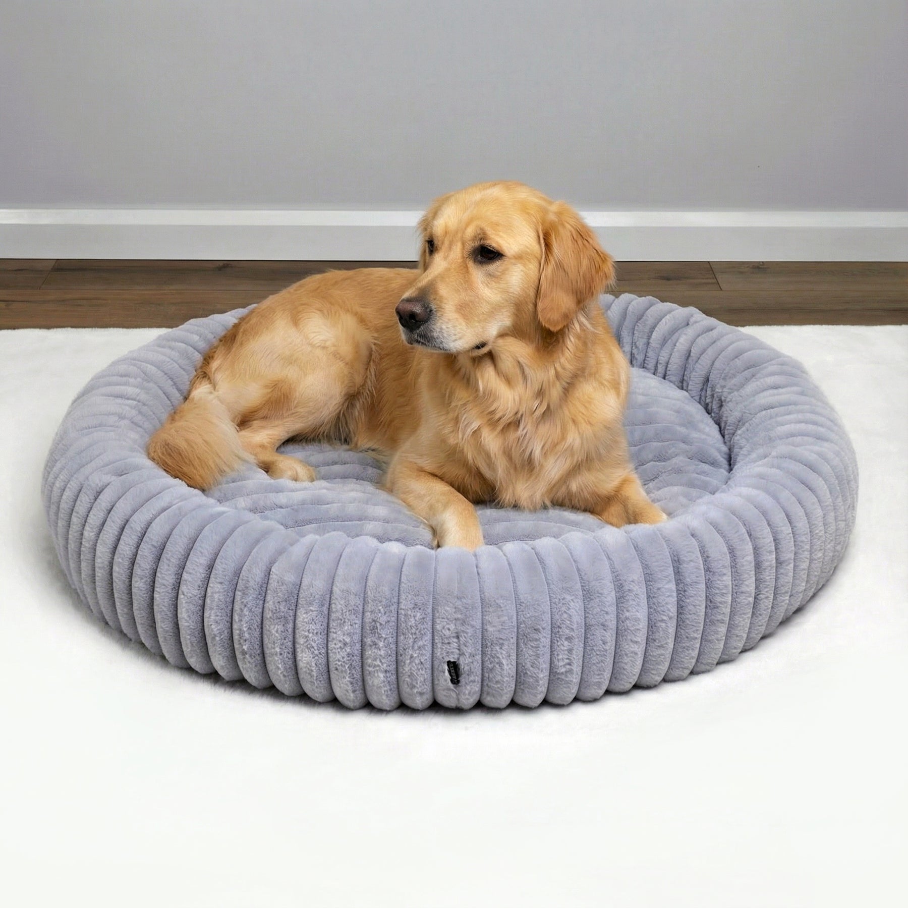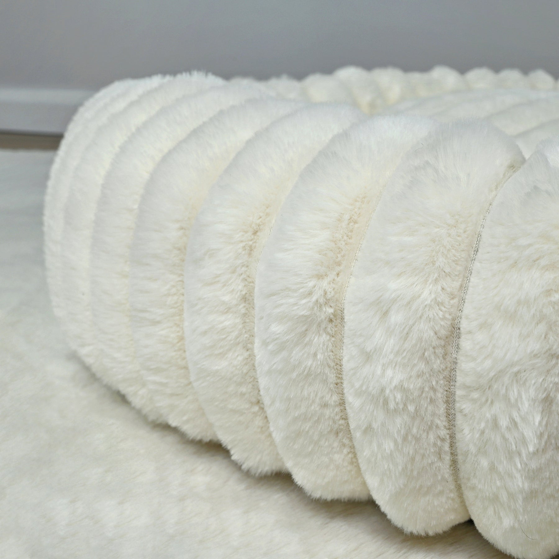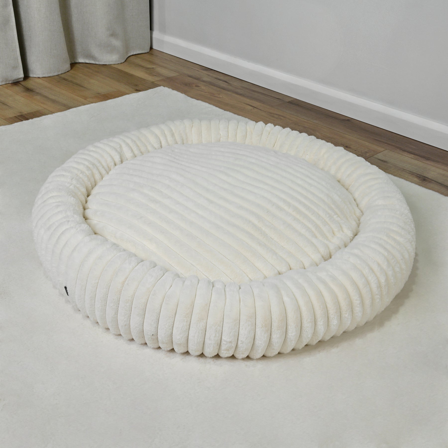 Signature Ribbed Plush: The entire bed is enveloped in a thick, premium faux fur with a distinct vertical ribbing. This unique texture is not only stylish but offers an irresistible tactile sensation and a deep level of comfort.