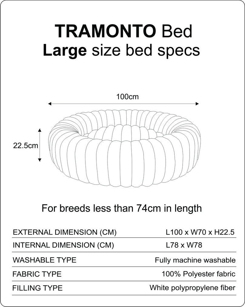 Keeping your Tramonto Bed plush and luxurious is simple. Designed for comfort and easy maintenance, this bed features a fully removable cover system to ensure a fresh sleeping space for your pet.