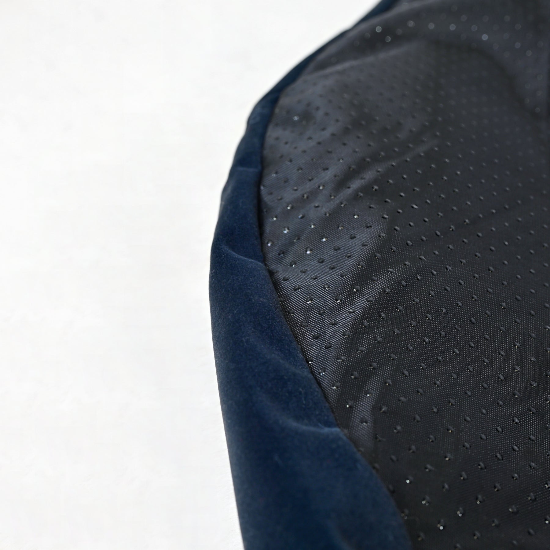 Elegant Two-Tone Finish: The exterior base and hood are crafted from a durable, sleek fabric (resembling velvet or micro-suede) in a deep Navy Blue, providing a chic, modern contrast to the plush cream interior.